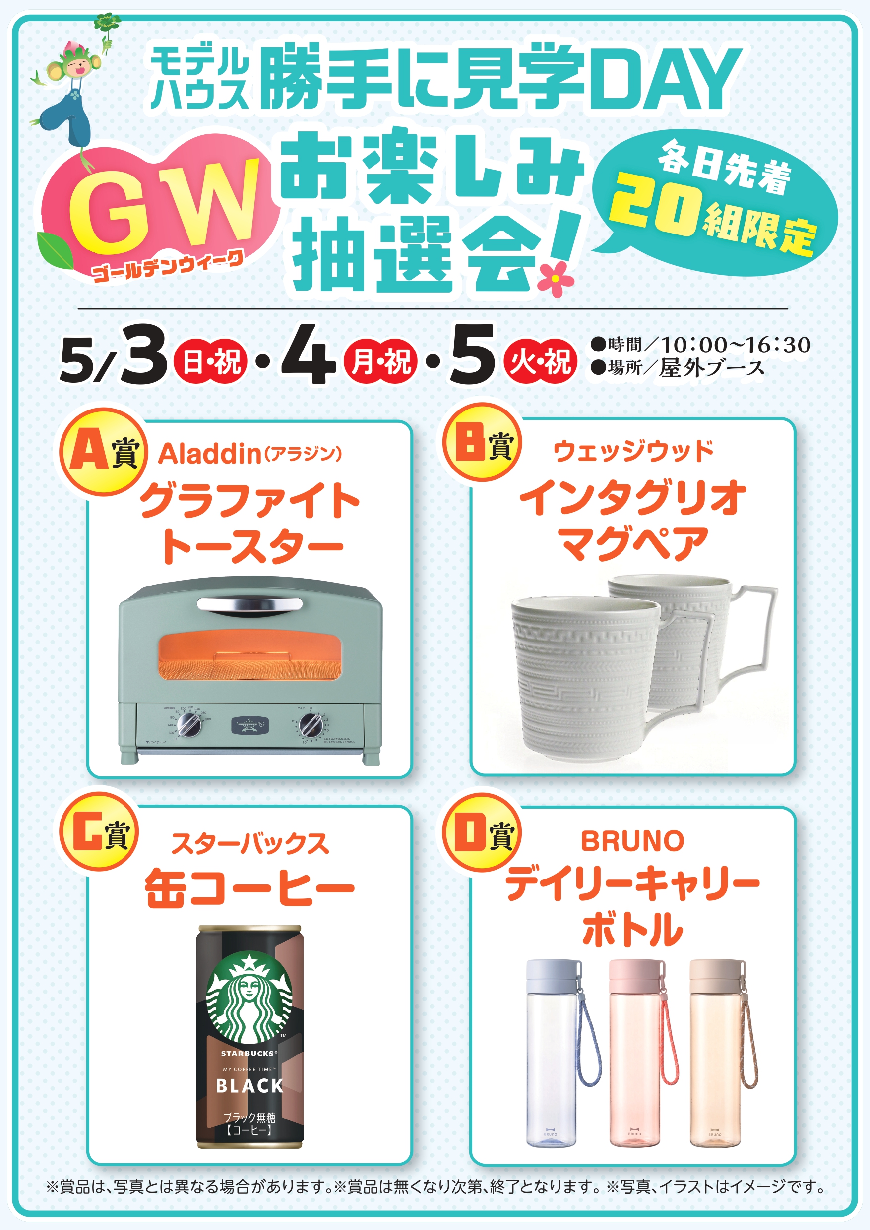 | 開催時間 | ■時間/10:00~17:00 (最終受付16:00までにお済ませください) ※早めに来場される方がたくさん見られます! ■見学時間/1棟あたり約15分 ■事前予約は不要 |