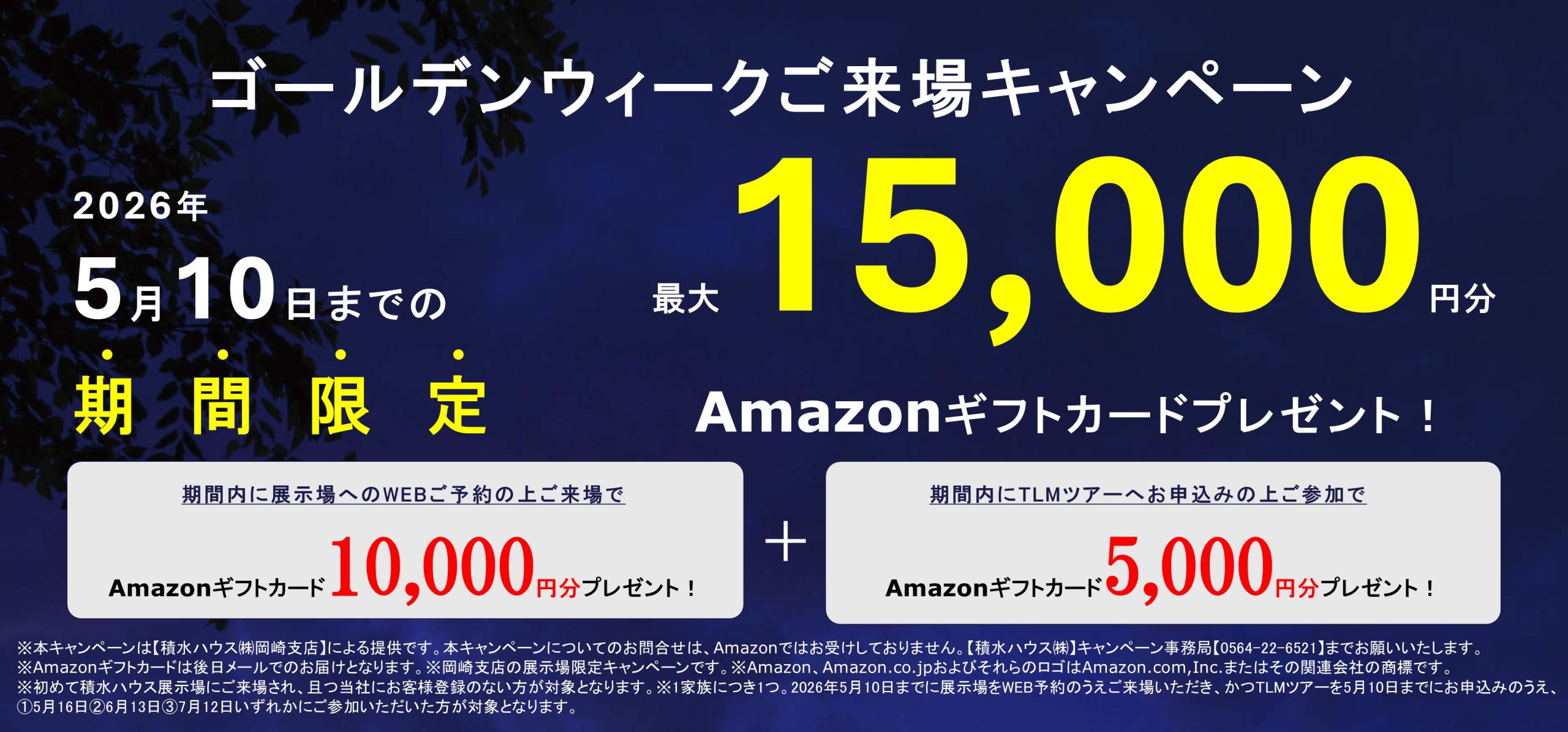 【Amazonギフト最大15,000円分プレゼント】展示場ご来場予約キャンペーン