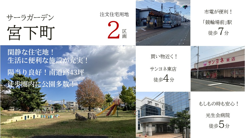 ■豊橋市宮下町(サーラガーデン宮下町)・・・市電「競輪場前」まで徒歩約7分