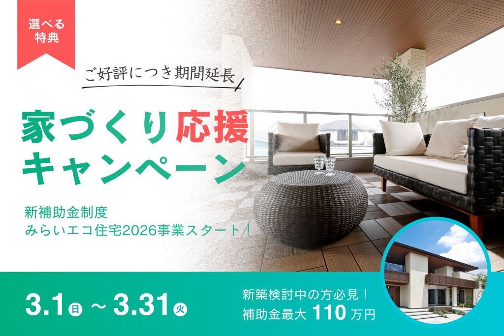 期間延長!《家づくり応援キャンペーン》~3月31日まで